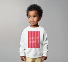 Le nostre felpe per neonati sono realizzate all'85% in cotone biologico ed etico e al 15% in poliestere riciclato.
