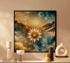 Sperimentate il potere trasformativo delle nostre opere d'arte. Sono più di una decorazione: sono porte d'accesso alla pace interiore e all'illuminazione spirituale. Immergetevi in un mondo di armonia e potere spirituale. Le immagini uniche, dipinte e digitalizzate, creano un'atmosfera di mindfulness, meditazione e pace interiore nel vostro salotto, nella sala di meditazione o nella sala yoga. In una pratica di psicoterapia, promuovono la guarigione e il lavoro energetico. Oltre al fiore della vita, all'albero della vita o ai mandala, troverete molti altri motivi di ispirazione spirituale.