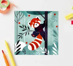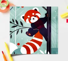 Un simpatico panda rosso, giocosamente appeso a un albero nella giungla. Questo disegno irradia gioia di vivere e vicinanza alla natura - perfetto per gli amanti degli animali e per gli appassionati di illustrazioni allegre.Questo disegno trasmette gioia di vivere, giocosità e la bellezza della natura.