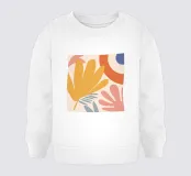 Un'opera d'arte botanica astratta dominata da un grande fiore stilizzato in una tonalità giallo oro. Le forme morbide e i colori caldi creano un'opera al tempo stesso audace e delicata, piena di solare ottimismo.
