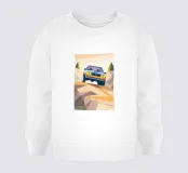 Illustrazione di un fuoristrada che guida in montagna con uno stile geometrico dinamico.