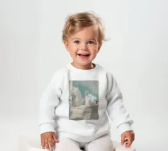 Le nostre felpe per neonati sono realizzate all'85% in cotone biologico ed etico e al 15% in poliestere riciclato.