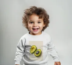 Una dolce e semplice illustrazione di mezzo avocado su uno sfondo a griglia rosa pastello. Perfetta per le pareti di asili nido, stanze di bambini o decorazioni giocose per la cucina. I colori tenui e il design amichevole lo rendono ideale per creare uno spazio allegro e accogliente.