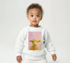 Un'immagine sorprendente di una pecora blu surreale con lana strutturata, che si staglia su uno sfondo rosa brillante. L'audace contrasto cromatico e la composizione minimalista creano un'estetica giocosa e moderna.