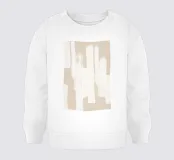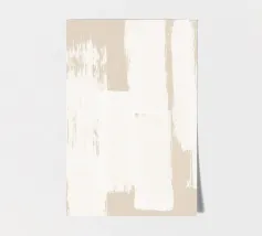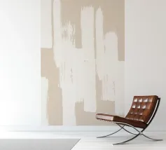 Opera d'arte astratta con pennellate verticali irregolari in beige e bianco, che creano un effetto strutturato e stratificato per un'estetica sofisticata e moderna.