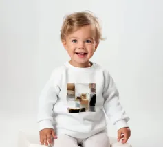 Le nostre felpe per neonati sono realizzate all'85% in cotone biologico ed etico e al 15% in poliestere riciclato.