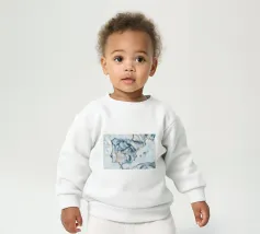 Le nostre felpe per neonati sono realizzate all'85% in cotone biologico ed etico e al 15% in poliestere riciclato.