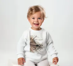 Le nostre felpe per neonati sono realizzate all'85% in cotone biologico ed etico e al 15% in poliestere riciclato.