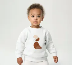 Le nostre felpe per neonati sono realizzate all'85% in cotone biologico ed etico e al 15% in poliestere riciclato.