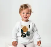Le nostre felpe per neonati sono realizzate all'85% in cotone biologico ed etico e al 15% in poliestere riciclato.