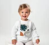 Le nostre felpe per neonati sono realizzate all'85% in cotone biologico ed etico e al 15% in poliestere riciclato.