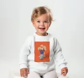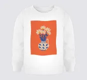 Un'affascinante natura morta di un bouquet di margherite bianche in un grazioso vaso a fantasia. La semplice bellezza dei fiori e il caldo sfondo arancione creano un'opera allegra e senza tempo.