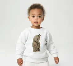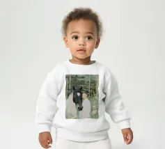 Un'immagine surreale in bianco e nero di una donna in abito di pizzo che si trova di fronte a una gigantesca testa di cavallo con texture screpolate, che crea un'atmosfera onirica e stimolante in un cielo nuvoloso.