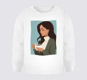 Una donna che tiene in mano una tazza di caffè caldo nella morbida luce del mattino. I toni delicati e le linee semplici ne fanno un'opera perfetta per le mattine lente e le routine tranquille.