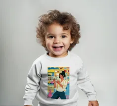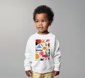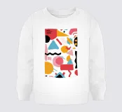Una composizione astratta caotica e divertente in stile Memphis, con un assortimento casuale di forme geometriche, ghirigori e motivi. L'opera d'arte è energica, giocosa e ha una fresca atmosfera retrò.
