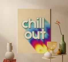 Una tipografia d'ispirazione contemporanea e rilassante. La stampa "Chill Out" utilizza un'audace scritta in 3D e una rilassante palette di verde menta e Aura arcobaleno per promuovere la consapevolezza e la tranquillità. È un'aggiunta ideale a qualsiasi area Wellness o Home Spa, perfetta per incoraggiare la cura di sé e la salute mentale. Una stampa fantastica e moderna per interni minimalisti e Dopamine Decor. Da showmemars