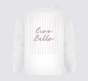 Stampa murale Ciao Bella, decorazione minimalista a righe rosa con citazioni italiane