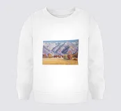 Maestose montagne innevate si ergono su una valle tranquilla e invernale; la luce nitida e la fresca tavolozza di bianchi, blu e gialli pallidi catturano la bellezza silenziosa e serena del paesaggio alpino.