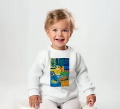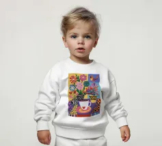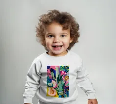 Un collage vibrante e caotico di motivi contrastanti, tra cui righe, pois e forme organiche. La gioiosa esplosione di colori e texture crea un'opera d'arte energica e piena di vita.