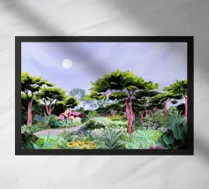 Sarah Gesek conferisce ai suoi paesaggi un'atmosfera da paese delle meraviglie ultraterreno con colori ricchi e porta mondi lontani nelle vostre case. L'artista di Seattle preferisce lavorare con colori acrilici su carta, ma anche con gouache, matite colorate, pastelli a cera e altro ancora. Ispirate dallo spettacolo naturale di rocce scoscese e giardini ondulati, notti stellate e cieli atmosferici, le opere di Sarah infondono un senso di vagabondaggio. Immergetevi, camminate e innamoratevi di nuovo del nostro mondo.