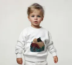 Le nostre felpe per neonati sono realizzate all'85% in cotone biologico ed etico e al 15% in poliestere riciclato.