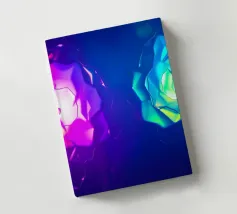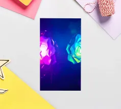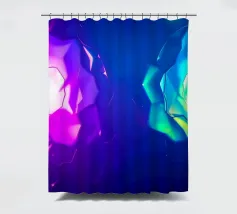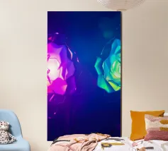 Due forme astratte di rosa sono in mostra su uno sfondo scuro, illuminato da sfumature luminose di viola e blu. Questo design artistico crea uno sfondo per telefono visivamente accattivante.