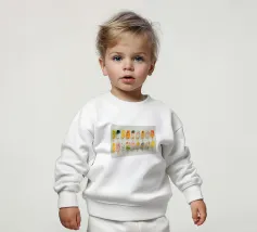 Le nostre felpe per neonati sono realizzate all'85% in cotone biologico ed etico e al 15% in poliestere riciclato.