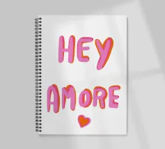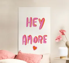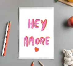 "Hey Amore" con un cuore - una tipografia affettuosa nei colori rosa-arancio-bianco che celebra la gioia della famiglia e dell'amore. Perfetto per matrimoni e come poster romantico.