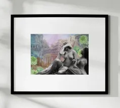 Un terreno da sogno cucito dal tempo e dal mito: All At Once fonde tre paesaggi iconici in un mondo surreale e senza luogo. Il tranquillo specchio del Monte Fuji di Kashiwabara (1896, Kazumasa Ogawa) si innalza nella silhouette delle Piramidi di El-Geezeh di Frith del 1858, il tutto coronato dalle eteree dune di White Sands, nel Nuovo Messico, catturate dalla NASA. Insieme, queste scene dissolvono la geografia e la cronologia per evocare una tranquilla meraviglia cinematografica, dove vulcani e faraoni si incontrano davanti a dune simili a nuvole. Un portale per il muro e un pellegrinaggio per l'occhio.