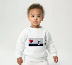 Un escavatore giallo è posizionato accanto a una benna rossa piena di oggetti a forma di cuore, che simboleggiano l'amore. L'ambientazione è caratterizzata da un terreno soffice, che aggiunge un tocco unico al tema di San Valentino.