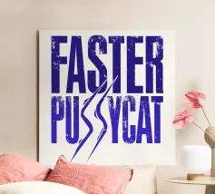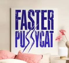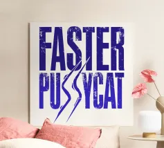 Quest'opera d'arte da parete presenta un design tipografico di grande impatto, con scritte audaci e rovinate in un gradiente blu intenso che conferisce un'estetica rock e grintosa.