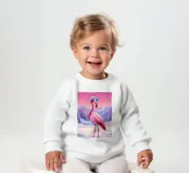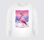 Date alle vostre pareti qualcosa per cui sorridere. Questa opera d'arte audace e stravagante presenta un fenicottero sicuro di sé che si erge fiero in una scena invernale innevata, con tanto di occhiali da sole riflettenti e piume rosa acceso. La vivace palette di colori mescola i caldi toni tropicali con i freddi blu artici, creando un giocoso contrasto visivo che cattura immediatamente l'attenzione.