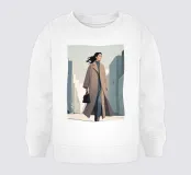 Una donna elegante cammina in un ambiente urbano sobrio, con il cappotto che scorre e la borsetta in mano. I toni calmi e la luce delicata sottolineano l'indipendenza e lo stile sicuro di sé.