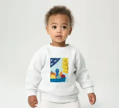 Le nostre felpe per neonati sono realizzate all'85% in cotone biologico ed etico e al 15% in poliestere riciclato.