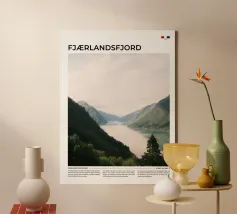 Catturata nel cuore della Norvegia dei ghiacciai, questa veduta del Fjaerlandsfjord mette in risalto il blu intenso delle acque incorniciate dalle ripide pareti delle montagne e dalla quiete della natura selvaggia. La scena trasmette un senso di calma e forza, aperta, ampia e inconfondibilmente nordica. Un'opera senza tempo per chiunque sia attratto dai paesaggi selvaggi e dalla forza tranquilla della natura.
