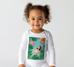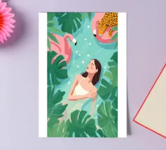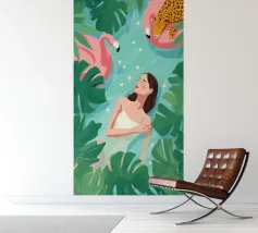 Galleggia in un mondo in cui fiorisce l'immobilità, dove i fenicotteri scivolano, i petali vanno alla deriva e persino un leopardo a riposo sembra sognare. Sospesa nell'acqua e nella meraviglia, è trattenuta dalla quieta magia di un momento che sembra allo stesso tempo indomito e completamente in pace.