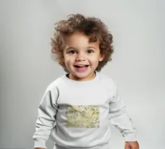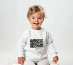 Le nostre felpe per neonati sono realizzate all'85% in cotone biologico ed etico e al 15% in poliestere riciclato.