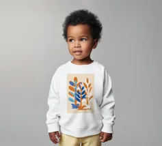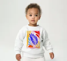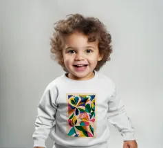 L'opera d'arte astratta presenta forme audaci e ritagliate di foglie e forme organiche nei colori blu, rosso e verde, chiaramente ispirate all'opera iconica di Henri Maraoui.