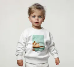 Le nostre felpe per neonati sono realizzate all'85% in cotone biologico ed etico e al 15% in poliestere riciclato.