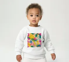 Un motivo audace ed energico che combina la stampa leopardata con fiori e foglie tropicali astratti in una vivace combinazione di colori, creando una fusione selvaggia e alla moda.