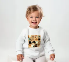 Il design stravagante presenta gatti giocosi di vari colori, ognuno dei quali indossa sciarpe uniche su uno sfondo chiaro. La vivace composizione mette in mostra creatività e fascino.