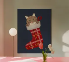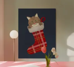 Gatto in una calza di Natale