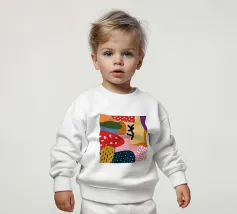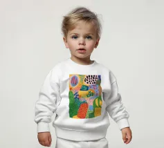 Un collage astratto vibrante ed eclettico caratterizzato da un mix di motivi audaci, tra cui righe, stampa ghepardo e pois. La composizione è un'espressione giocosa ed energica di uno stile moderno bohémien o massimalista.