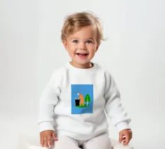 Un allegro orso arrostisce un marshmallow su un fuoco da campo, circondato da pini, trasmettendo il messaggio "Vai fuori". Lo stile semplice e giocoso e la palette di colori caldi promuovono le gioie delle avventure all'aria aperta.