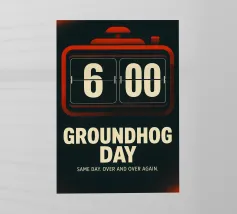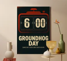Stampa del Giorno della Marmotta, Poster cinematografico alternativo, Bianco e nero, Stampe di qualità minimalista, Orologio radio digitale, Marmotta, Regalo per gli amanti del cinema