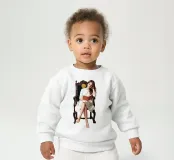 Le nostre felpe per neonati sono realizzate all'85% in cotone biologico ed etico e al 15% in poliestere riciclato.