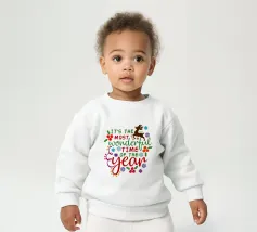 Immagini festive circondano la scritta "It's the Most Wonderful Time of the Year", con personaggi di pan di zenzero, fiocchi di neve e decorazioni a tema natalizio.
