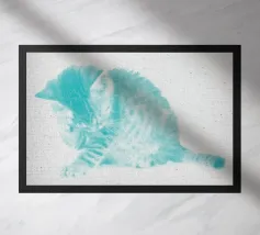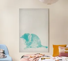 "Kitten 02" porta in casa un'immediata leggerezza: un delicato motivo a gattini di colore turchese, giocoso e moderno. Perfetto per le camere dei bambini, i bagni o come simpatico richiamo nella vita di tutti i giorni - particolarmente apprezzato come tenda da doccia o poster. I colori tenui e il look minimalista si adattano agli interni Scandi, alle camere familiari e a tutti coloro che amano gli animali, le illustrazioni di gatti, la simpatia e l'arte murale moderna. Un design di cui innamorarsi, per grandi e piccini.