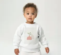 Le nostre felpe per neonati sono realizzate all'85% in cotone biologico ed etico e al 15% in poliestere riciclato.
