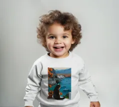 Un'illustrazione sognante e piena di luce di due aquiloni bianchi che si librano in un cielo azzurro, con delicate code di nastro che scivolano vicino al sole splendente. Con una texture pastello e una tavolozza pacifica, quest'opera d'arte cattura l'essenza della libertà, della nostalgia e della gioia tranquilla. Perfetto per asili nido, spazi ariosi e per chiunque sia attratto da scene di serenità edificanti e minimaliste.